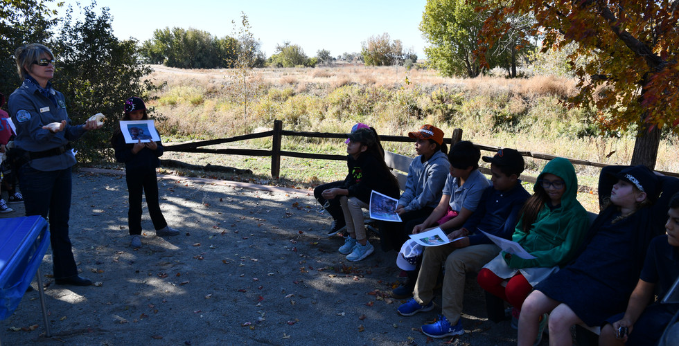 The next station was out near the start of the Neidrach trail. There, they discussed the history of Barr Lake. About 100 years before Barr Lake became a state park in 1975, it served as an oasis for wildlife and people, providing a natural depression for a buffalo wallow. The railroad brought more settlers to the Denver area, causing the land around Barr Lake to populate and develop. Before the Clean Water Act of 1964, Barr Lake was a dumping ground for Denver's sewage, and was considered one of the most polluted places in Colorado. Today, pollution in Barr Lake has significantly decreased thanks to regulations and water treatment systems put in place. It has once again become an oasis for both wildlife and people to enjoy. The lake is separated between the north and south ends. The south end of the lake is a wildlife refuge while the north is dedicated to fishing and boating.